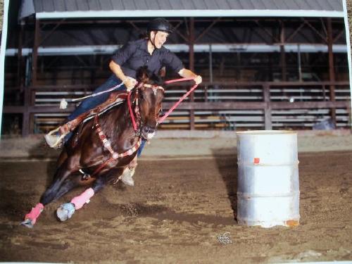 "Shes turned into one mean gaming horse. Lydia has brought home quite a few ribbons and trophies, and not to mention we are hot on the heels on the NBHA riders as well. We have competed in a couple Cowboy Challenges and have done quite well. This year was a real venture, in between being my guide horse on the trails for a children's camp we have started doing some hunter jumper lessons, and team penning (what a combo). So when you say "Here at Ment 2 Be Farms we strive to breed good quality all around horses." well I think you hit that one on the head :) thanks so much! "