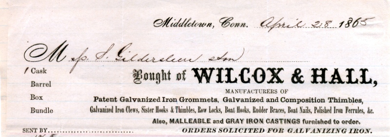 In 1847, Middletown was New England's largest inland port, and it was in that year the company that would become Wilcox, Crittenden & Co., Inc. was established. According to the centennial history of the company, it was in Ben Butler's sail loft in Middletown that Eldridge Penfield first conceived of developing a metal grommet (later to be called the sail eyelet grommet) to replace the rope grommets that were currently being used by sailmakers.