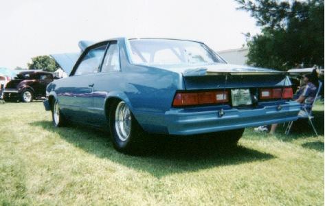 It's powered by a 327 small block Chevy, turbo trans with a tubbed back half with a Chevy rear end. Dick has a custom tweed interior with a 8 point bar, weld drag lites and a "Big" Mickey out back.