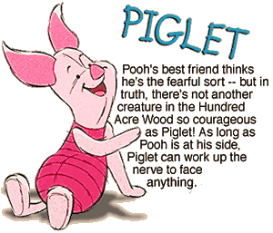 much, he gets himself stuck at Rabbit's door. Pooh's best friend is Piglet.