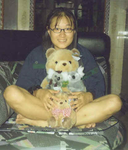 She is a fun loving gal who enjoys playing games and shopping. She loves to splurge on food and cute stuff such as me and my bear pals etc. She loves movies and music. Her fav singers are Westlife and Backstreet Boys.