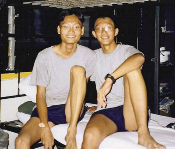Here's a picture taken on my bestest friend's bed during his army days. With him is his friend Hon Choon.