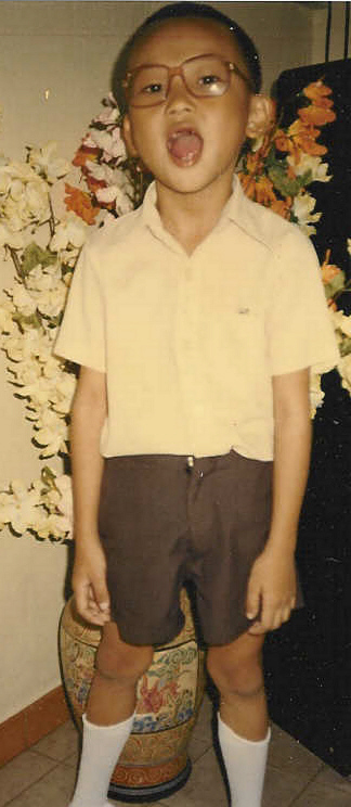 Here's a picture when my bestest friend was in Henry Park primary school uniform. Even then his mouth is already so BiG!