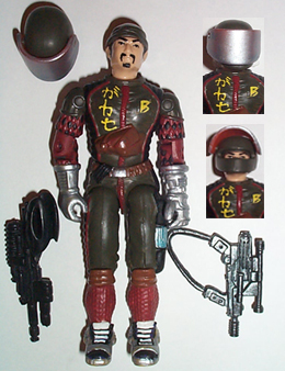 For anyone who doesn't know a whole lot about the custom projects I'm talking about, Click Here and follow the links to "custom projects". Liberty: 2198 is the third custom project done at The Bivouac. As can be probably guessed by the title, it is kind of a step away from the typical custom projects; Liberty: 2198 deals with a future world run by corporations instead of countries. CobraCorps is the premiere superpower in the world and it needs to be knocked down a couple notches. A small resistance group forms in the ravaged America and stumbles across the ruins of a place known only as "The PITT". Here, they learn of the history of G.I. Joe, and realize the time has come to begin a new era of the Real American Hero. The figure I did for this custom project is an ace B.O.L.T. Pilot named Kamikaze. To find out his background, check him out at The Bivouac under "custom projects" and "Liberty: 2198".