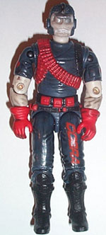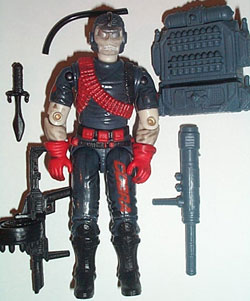 The paintwipes are generously applied on this particular figure, but it only adds to it, and does not detract, especially on the skull mask and the white sleeves. He looks like a "down and dirty" special forces Cobra trooper, and that is exactly what he will be in my universe. He's got twin Cobra sigils on each shoulder which look downright awesome, and I don't care what any fans say, I LOVE the COBRA running down his leg. Perfect touch! Accessories are another winning touch here as well, giving him the large backpack and the absolutely killer grenade launcher and blade that the original Range Viper came with. It makes me wonder why Hasbro gives some of these guys scores and scores of accessories, but leaves others out in the cold? Still, all together, this figure is the gem in the bunch, which is a tough call, since there isn't a single 2000 (2001?) figure that I DON'T like. Buy them. Buy many of them. You can always customize the Major Bludds... : )