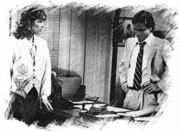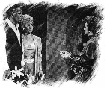 Act 6 Scene 1: Dissolve to: Fantasy, Capwell Atrium. Sophia appears at the top of the stair in a wedding gown and slowly descends, suddenly she falters and goes tumbling down the stairs. Gina, previously absent, is now there on the stairs in a wedding gown with her foot across the stair where she tripped Sophia. |
