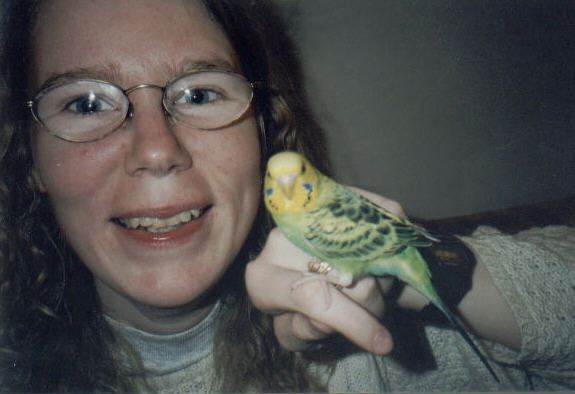 she was the boss in her cage she shared with her two other parakeet-'siblings'... :-)