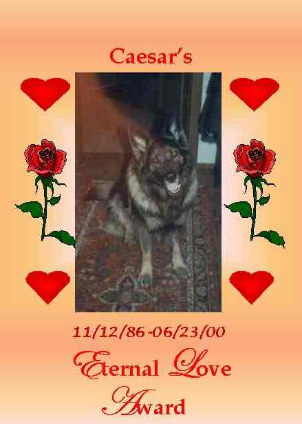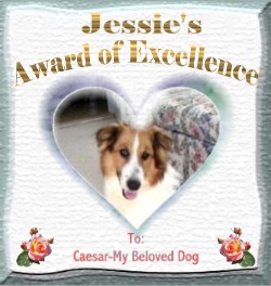 Thanks so much to Dot and her dogs Cheyenne and Brandi Bear for giving Caesar these beautiful awards!