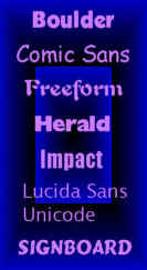 For whatever reason, Frontpage2000 does not embed fonts when pages are saved. If you don't already have the fonts I'm using, you are probably seeing everything in boring old Times New Roman instead.