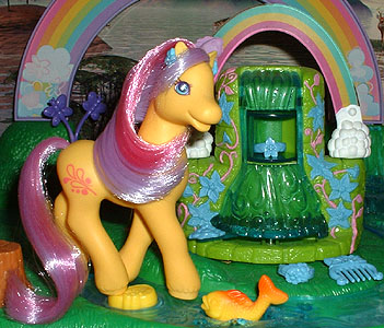 Satin Splash's head to lift her leg. Accessories: 2 blue