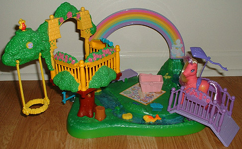 Rainbow Forest with a treehouse, bridge, picnic area, see-saw, swing,