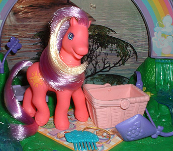 and magic waterfall; picnic basket, telescope, kite, and blue comb.