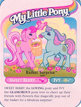Sweet Berry the loving pony and Ivy the glamorous pony love to cheer up their friends with flowers that magically pop out the basket for a fabulous surprise!