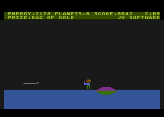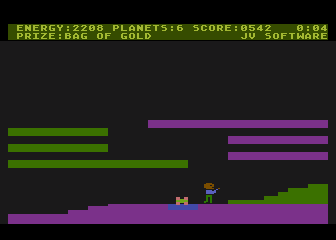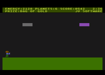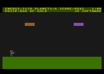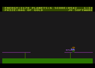 Now go back 2 screen to the left again and a key will fall. Make sure you catch the key in the air whilst holding on to the twinkling bar. If the key hits the floor then you won't be able to pick it up. If this happens then exit the screen, then come back for another try. |