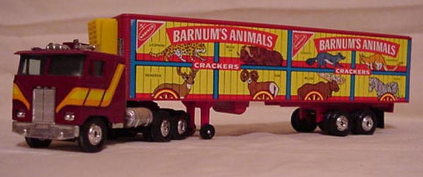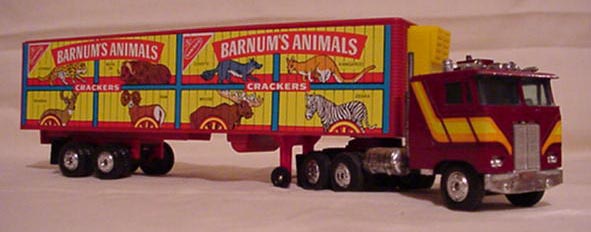 In the late 1800's, Circus Crackers- animal shaped cookies- were being imported from England. To answer the demand for fancy baked goods, American bakers began making their own versions. In 1902, Animal Biscuits assumed the legal trademark name "Barnum's Animals" under the National Biscuit Company banner. This name was later purchased by baking conglomerate "Nabisco", and is still the registered name for this line of cookies. Although not quite as popular as they were before juice boxes, fruit roll ups, and the microwave goodies of today came along, these tasty little treats are still sold in most major supermarkets. Go get yourself a box today!