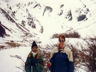 (Real story;- A short bus ride took us up a winding road where at the end, we took a chair lift. There, we were given a guide, who took us on an hour walk through the snowy mountains to the side of the Martial Glaciar. To reach the front was a two hour walk, but due to the heavy snow fall, it was more difficult to reach and more dangerous. We were told the ice pack couldn’t be seen anyway due to the thick cap of snow that covered everthing.)