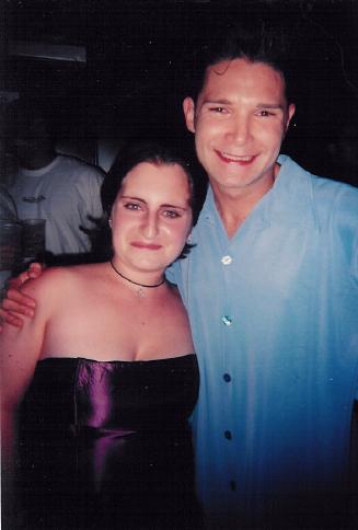 My two wonderful friends, dana and nicole :::applause:::, and I traveled to Hollywood's Key Club to celebrate Corey Feldman's 30th birthday... We arrived @ the club @ 7 p.m., or a tad bit earlier, and ended up being the first people in line, which seemed suspicious to me at the moment, but I shrugged it off... I asked to use the bathroom, and as I came out, I could tell my friends were hiding something, and they wouldnt tell me! Finally the guy working there told me as i was buying a ticket for the show, that Corey would not go on until 10:15, but alas, @ 10 all people under 21 were being kicked out!!! This was at about 7, and the guy felt soo bad for me because I was crying, he let us all in for free... So, we went in, I cried for about 2 hours on and off, and i decided to hide in the lounge downstairs because it was dark and it was quieter... I go downstairs, and my friends were constantly looking for ways for me to stay, and finally Nicole asks this woman when Corey was coming, and it turns out in 15 minutes! She asked if we were fans, and I said yes and asked if there was anyway to get us backstage, and she said yes! So, she asked us to be videotaped for the E! news, which she was actually from!!! So, i said sure... we started picking a place to film, when someone comes in and says "Hes here! Coreys here!"... So, we walk into the room, and she (Pam Lewis) starts talking to him, and im just standing there thinking "This is Corey Feldman.. this is my idol, mentor, fave actor/musician, etc etc", and i say hello, that im his biggest fan, shake hands, hug, tell him im proud of him, and ask for a pic.. which i took! ... The whole time he looked straight into my eyes, and it was amazing! I started crying because I was so happy, but not like bawling (just the moist, teary eyed cry people experience when they are shocked/in a pure state of bliss).. and she began to interview him, WHILE I WAS STANDING RIGHT NEXT TO HIM!!! (I was wearing a maroon tube top, black pants, feather boa around my waist).. I must admit though, I am a bit retarded! They asked him if his bday was today, and he said he couldnt say and i said "No, its not!!"... Then i asked him if he could play a song for me, and he asked me which one, and i said "Backdoor Victoria" and he said no, we cant.. then i remembered! i think he played that one with his old band, and NOT the Truth Movement... So, then the woman interviews us, she asks us how long we had to drive, what we think of haim and feldman together again (HAIM WAS THERE, RIGHT NEXT TO ME, BUT I DIDNT SEE! i heard he looks like shit though, cuz hes addicted to painkillers, which the woman explained to me later)... Then Im crying more on camera which makes me seem even stupider and more annoying... I also saw a lady friend who was with him.. She was gorgeous but too damn skinny... and I met his roomate, whos a female... They live in the same city as me! The CITY IS NOT BIG!! Sooo woohooo!!! LoL, then...im kinda getting shoved out of the place, but this one woman saw me being interviewed, and tried to get me backstage, but was unsuccessful, but oh well! OH!!!!! Also, I saw someone that looked exactly like him, and i said to him "are you coreys brother?" and he said "yeah.. we look alike, huh?" and i said "yeah" and shook hands with him.... He was really hot too! He's 21 :)!!! Anywho, it pretty much ends there.. After all that I now have a picture of me and Corey together, and a tape thats worth soooo much to me, of my first encounter too!!