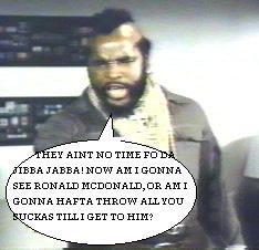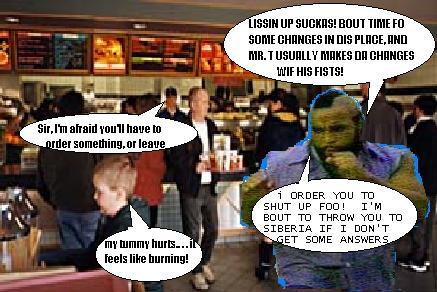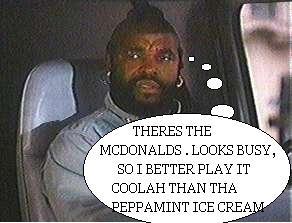 AFTER A FEW SECONDS OF SEARCHING IN HIS HELLUVA FAST VAN, MR. T LOCATES A MCDONALDS
