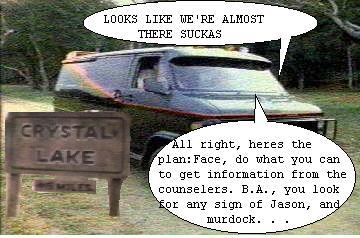 THE A-TEAM SETS OFF TOWARDS CAMP CRYSTAL LAKE, WHILE HANNIBAL LAYS OUT THE PLAN