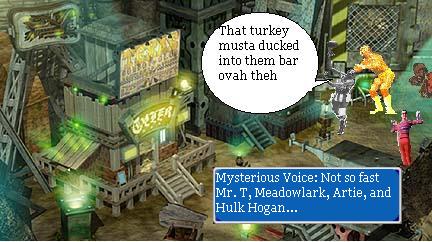 MR. T AND THE POSSE SEARCH WHATEVER PLANET THIS GAME TAKES PLACE IN. MEANWHILE, BACK IN MIDGAR...