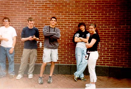 All of us hanging out in front of this brick wall on Liberty Island, Ben is smiling 'cuz he just climbed the freakin' thing and got yelled at by chaperones (teachers) :). Yeah, it's (from left to right) Ben Kaufmann, Nathan Cronk, Craig Ferguson, Josh Kaufmann, and Allison Sylver.