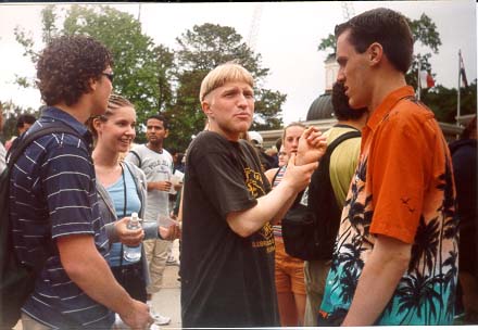 This is "the group" being indecisive as ALWAYS! *shakes head* We're standing in line outside the Six Flags in NJ waiting to get in, it was kinda cold and threatened to rain, not sure if it ever did or not. Anyhow, I love Nate's face, it's like,"What the frig are you talking about Josh?!" :D