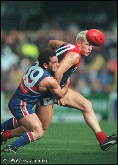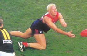 Shane celebrating his goal against Brisbane shortly before he was knocked down.