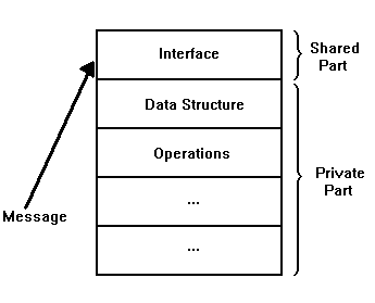 Το ιδιωτικό μέρος (private part) ενός object είναι η δομή των δεδομένων (data structure) και το σύνολο των λειτουργιών (operations) που μπορούν να εκτελεστούν πάνω σ’ αυτή τη δομή. Το object έχει επίσης ένα μέρος, που το μοιράζεται (shared part) και που είναι τα σημεία επαφής του (interface) με τον γύρω κόσμο.
