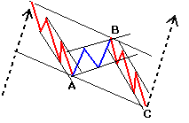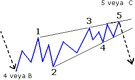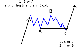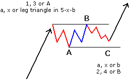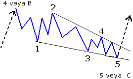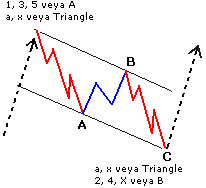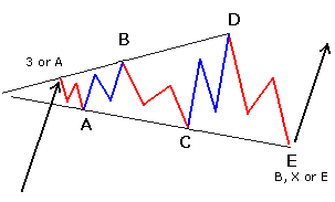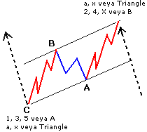 labilen, genişleyebilen üçgen patternidir. İlaveten artabilen ve azalabilen dir. Her bir dalgası düzeltme dalga yapısına (özelliğine) sahip beş dalgadan oluşur.Kurallar ve rehber Çizgileri: