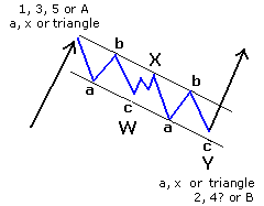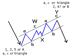 Bir X dalgası daha kompleks düzeltmede orta dalgadır. Bu dalga her zaman düzelticidir ve zigzag ikili zigzag flat geniş