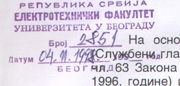 ![]() Na osnovu cl. 122. stavovi 1 i 2 Zakona o univerzitetu (Sluzbeni glasnik Republike Srbije br. 20 od 28. maja 1998. godine), cl. 63 Zakona o preduzecima (Sluzbeni list SRJ br. 29 od 26. juna 1996. godine) i clanova 88, 89, 100, i 137 Zakona o radnim odnosima (Sluzbeni glasnik Republike Srbije br. 55 od 31. decembra 1996. godine) donosim sledece kojim izricem dr. Milenku Cvetinovicu novcanu kaznu u iznosu od 815,00 dinara mesecno u trajanju od 4 meseci, pocev od naredne isplate na blagajni Fakulteta. Kazna ce se izvrsiti obustavljanjem odgovarajuceg iznosa prilikom mesecne zarade imenovanom. Dr. Milenko Cvetinovic je ucinio povredu radne obaveze iz clana 100 Zakona o radnim odnosima, jer je dana 03.11.1998. godine us sluzbenim prostorijama Fakulteta izazvao nered. Naime, imenovani je navedenog dana vikao po hodnicima Fakulteta i ucestvovao u grupi od nekoliko desetina studenata koji su duvali u pistaljke i stvarali ogromnu larmu vikom i drekom koja je ometala normalno odvijanje nastave u ucionicama i amfiteatrima. U Beogradu, 04.11.1998. god. DEKAN