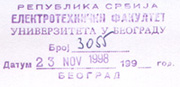 ![]() Na osnovu cl. 122. stavovi 1 i 2 Zakona o univerzitetu (Sluzbeni glasnik Republike Srbije br. 20 od 28. maja 1998. godine), cl. 63 Zakona o preduzecima (Sluzbeni list SRJ br. 29 od 26. juna 1996. godine) i clanova 88, 89, 100, i 137 Zakona o radnim odnosima (Sluzbeni glasnik Republike Srbije br. 55 od 31. decembra 1996. godine) donosim sledece kojim izricem dr. Dejanu Zivkovicu novcanu kaznu u iznosu od 1293,00 dinara mesecno u trajanju od 3 meseci, pocev od naredne isplate na blagajni Fakulteta. Kazna ce se izvrsiti obustavljanjem odgovarajuceg iznosa prilikom mesecne zarade imenovanom. Dr. Dejan Zivkovic je ucinio povredu radne obaveze iz clana 100 Zakona o radnim odnosima, jer je dana 04.11.1998. godine us sluzbenim prostorijama Fakulteta prisustvujuci nedozvoljenom zboru podsticao grupu izgrednika da neposredno posle toga stvaranjem ogromne buke ometa normalno odvijanje nastave u ucionicama i amfiteatrima Fakulteta. Pored toga, imenovani je prekrsio resenje Dekana kojim mu se do daljnjeg zabranjuje neoravdano zadrzavanje u glavnoj zgradi Fakulteta. U Beogradu, 05.11.1998. god. DEKAN
