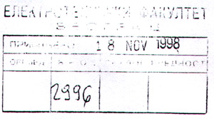![]() Na osnovu cl. 122. stavovi 1 i 2 Zakona o univerzitetu (Sluzbeni glasnik Republike Srbije br 20 od 28. maja 1998. godine), cl. 63 Zakona o preduzecima (Sluzbeni list SRJ br. 29 od 26. juna 1996. godine) i clanova 88, 89, 100, i 137 Zakona o radnim odnosima (Sluzbeni glasnik Republike Srbije br. 55 od 31. decembra 1996. godine) donosim sledece kojim izricem dr. Borivoju Lazicu novcanu kaznu u iznosu od 975,00 dinara mesecno u trajanju od 3 meseci, pocev od naredne isplate na blagajni Fakulteta. Kazna ce se izvrsiti obustavljanjem odgovarajuceg iznosa prilikom mesecne zarade imenovanom. Dr. Borivoj Lazic je ucinio povredu radne obaveze iz clana 100 Zakona o radnim odnosima, jer je dana 03.11.1998. godine us sluzbenim prostorijama Fakulteta izazvao nered. Naime, imenovani je navedenog dana podsticao grupu izgrednika da stvaranjem ogromne buke ometaju normalno odvijanje nastave u ucionicama i amfiteatrima. U Beogradu, 04.11.1998. god. DEKAN