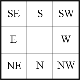 Cuando usted mira un cuadro de la Estrela Volante, el Sur siempre estará arriba al centro, con el resto de las direcciones de la Brújula puesto alrededor de esto. El cuadro siguiente debe hacer esto muy claro: