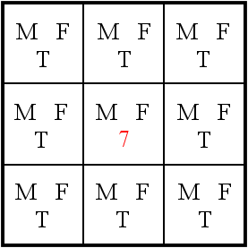 Así... tome su cuadro vacío, y escriba un 7 en la "T" correspondiente al centro del mapa, así:
