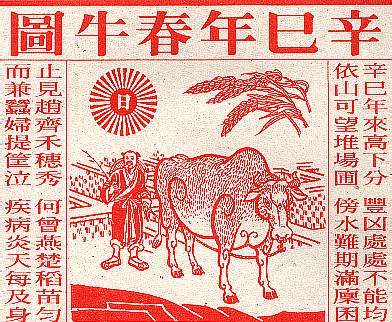 El Tong Shu (calendario Chino) nos muestra el Dibujo de la Vaca de la Primavera para este año. Aún sin saber leer el Chino, hay mucho que nos puede decir este dibujo.