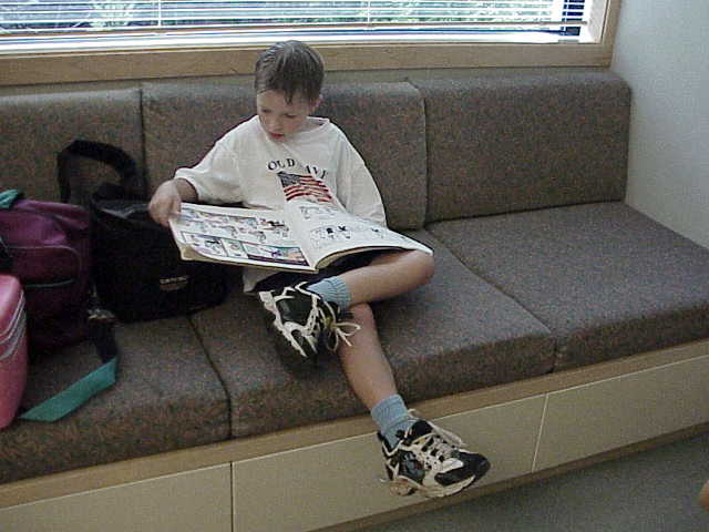 Micah finds a quiet place for homework! |