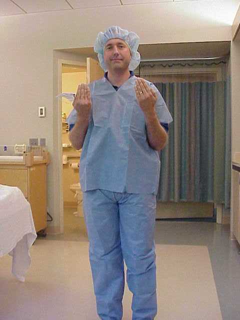 Dr. Dad is scrubbed up and ready to greet his new daughter! |