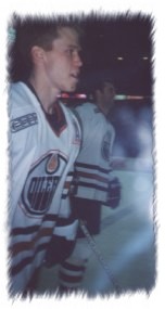 Here is another picture of my favorite Oilers player Todd Marchant. This is right before the speed competition - one lap around the rink. Todd skated around the rink in 13.700 seconds, thats the FASTEST in the NHL this year!