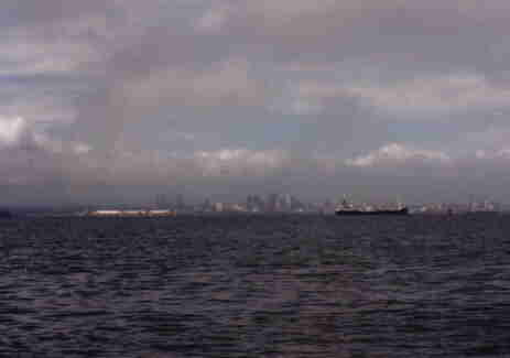 This is the Abidjan skyline (well, if you strain your eyes you can see it). I lived here for 5 1/2 months. Abidjan is the most developed city in West Africa and one of the most developed in all of Africa (Johannesburg is number one). Abidjan is surrounded by a lagoon. I know when you look at a map, you may think its on the ocean, but unfortunately, we are surrounded by this horrible smelly lagoon that is extremely polluted. It looks nice from far away though. This photo was taken from a bateau-bus trip around the lagoon. We visited the Port d'Abidjan (Abidjan Port) and Ile Boulay, a little island not far from Abidjan. |