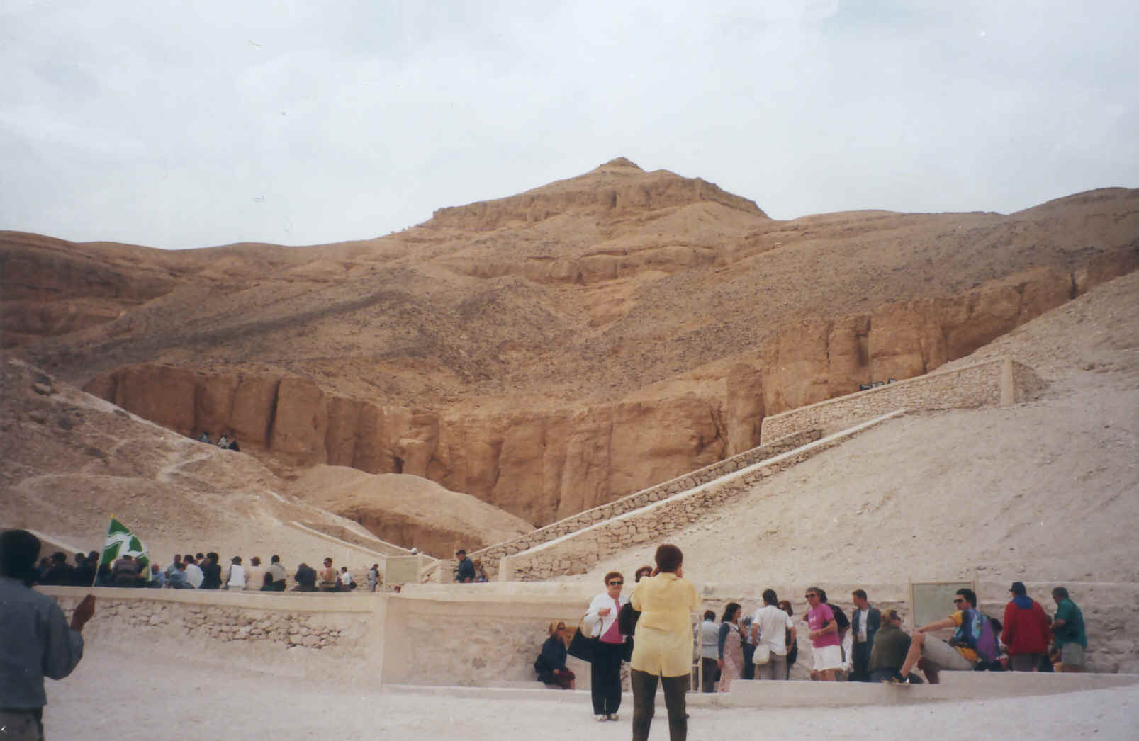 Dans la Vallée des Rois, se trouve la nécropole des Pharaons de la XVIIIème ;a la XXème dynastie. Cette vallée fut choisie en raison de la montagne conique qui rappelle la forme de la Pyramide de l'Ancien Empire. Sur cette photographie, nous apercevons l'entrée de la tombe de Toutânkhamon découverte le 4 novembre 1922 par Howard Carter . |