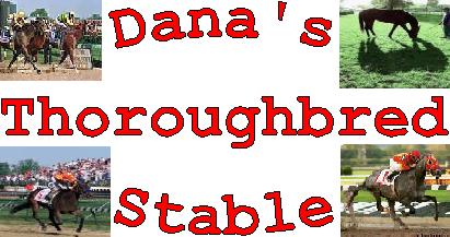 This is my thoroughbred stable. All of the horses here are my favorite. None are then are actually mine. I hope one day to have my own thoroughbred stable with gray throughbreds. Grays are my favorite colour. Skip Away was my fave last year. Skip Away won the 1997 Breeder's Cup Classic and was Horse of the Year in 1998. I also liked Silver Charm, winner of the 1997 Kentucky Derby and Preakness and the 1998 Dubai World Cup. Skip Away and Silver Charm and now Free House are retired now! :-( But I hope to see their kids racing soon!