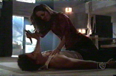 What was with Faith looking at her hands after she killed the demon? Was that internal conflict mode, or yuck I've got monster guts on me. And btw, she TOUCHED Angel with those hands! All though their 'intimate' scene, I was going ick, ick, get those OFF him, I like that shirt!