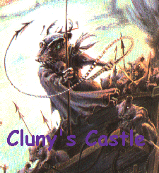 On the castle wall Frederic could read the large letters that were, CLUNY'S CASTLE. Frederic stood in shock and told Maple and the shrews what it said.'HE'S ALIVE!'said Frederic in a horrified voice. Frederic knew that Cluny would go after Redwall for revenge. So Maple, Frederic, and the shrews decided to go to Redwall Abby to tell the abbot the horrible news.....