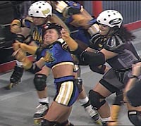 Amy and Heather fall down at da handz of Laura Wientraub!
