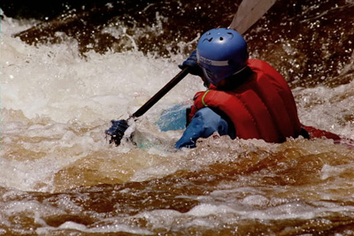David Wilhelms pounds through Duck's Nest Rapids on Section 4 of the Wolf River.
