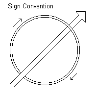 We can choose either direction through a surface or a loop to define as 'positive', but there are then two possible directions to choose as the positive direction round the loop. This is just a sign convention, the one chosen (I don't know who got to choose, but the corresponding convention for the vector cross-product appears to have orriginated with Gibbs.) is a 'right-hand rule', if we point in the positive direction through the loop with the thumb of our right hand and curl our fingers round then they point in the positive direction round the loop. The positive directions are shown by arrows in the next diagram: