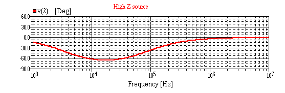 The phase lag with a high Z source has again been pushed down to a lower frequency range.