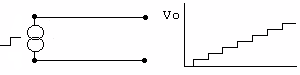 As an example consider a line with characteristic impedance 100R. If this is used to connect an 8 ohm load to an amplifier with 0.1 ohm output resistance, there will be reflection of energy back from the load, and energy will be reflected back and forward between source and load, reducing in amplitude at each reflection. This may seem a serious problem, in audio applications surely transients will be smeared and lose their initial shape. The reason why this is not a problem can be illustrated by looking at the worst possible effect, with a loss-free cable driven by an infinite impedance source, connected to an infinite impedance load, and with a current step input signal having a zero rise-time, starting at zero and stepping up to a small constant current. The result will be that the initial transient will reflect backwards and forwards forever with no loss, and the output voltage across the load must surely be regarded as an extreme distortion of the signal. The following diagram shows what happens: