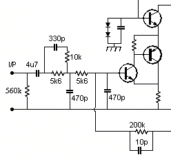 Some of the MJR7 amplifier component values are critical for dependable stability. In some cases a combination of several capacitor and resistor values is important. Sticking to the specified values there should be no problem, but if, for example, we wanted to double the bandwidth from 60kHz to 120kHz we would perhaps try reducing the two 470p capacitors in the input circuit to 220p, but this could increase the feedback loop unity gain frequency beyond 10MHz potentially causing instability. To avoid this we also need to reduce the 10p across the 200k feedback resistor to 4p7. That is necessary anyway, because it contributes to the 60kHz bandwidth.